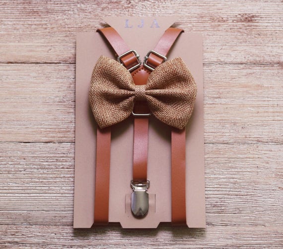 Caramel Brown Leather Groomsmen Suspenders And Honey Brown Bow Etsy